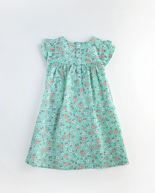 Adorable Sea Green Floral Dress for Girls in Pure Cotton