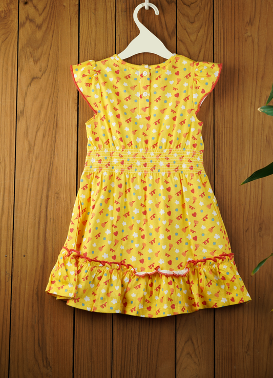 Marigold Blossom: Vibrant Cotton Dress for Girls