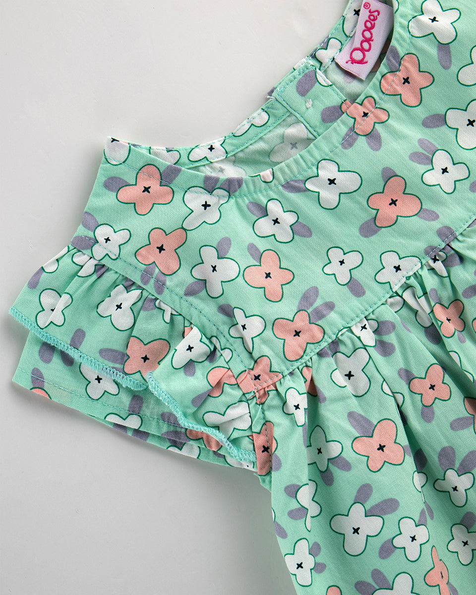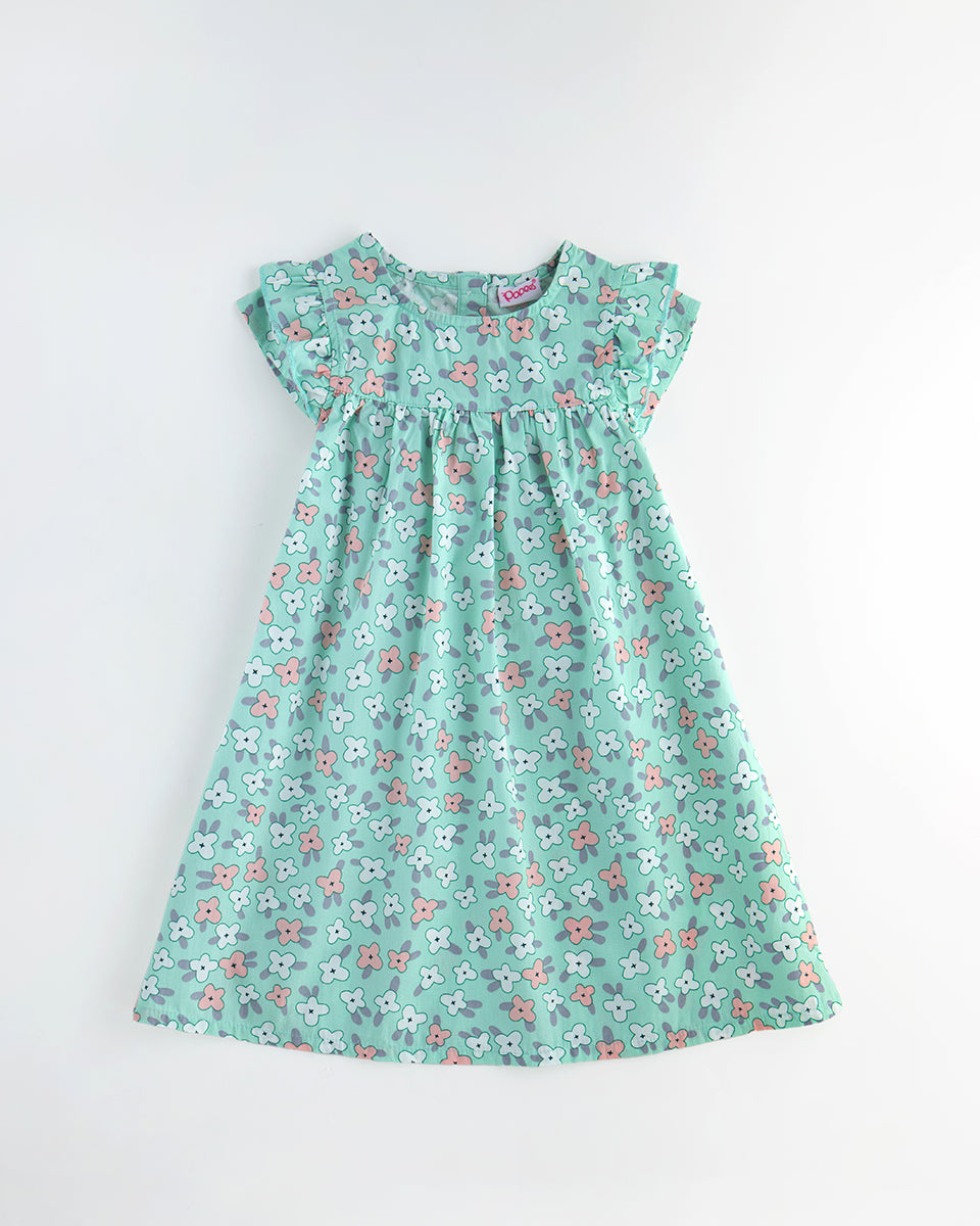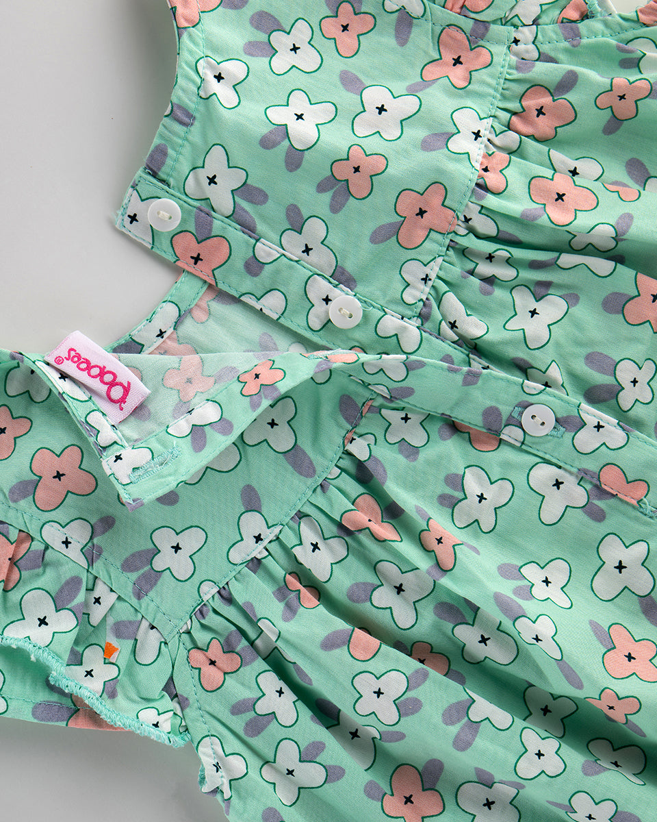 Adorable Sea Green Floral Dress for Girls in Pure Cotton