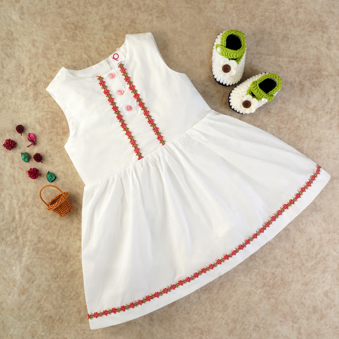Adorable Snow-White Dress for Girls : Pure Cotton and Kid-Safe dyes