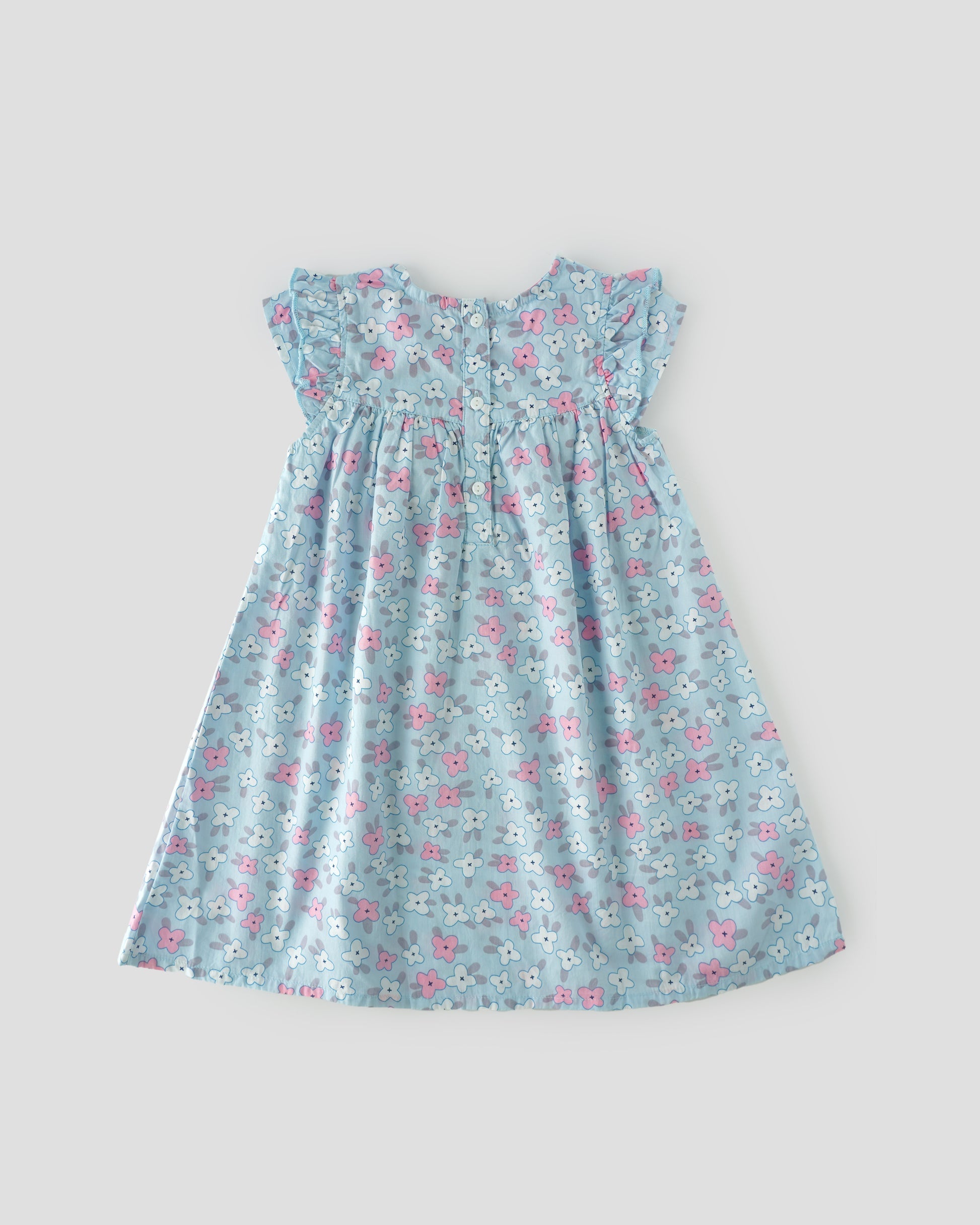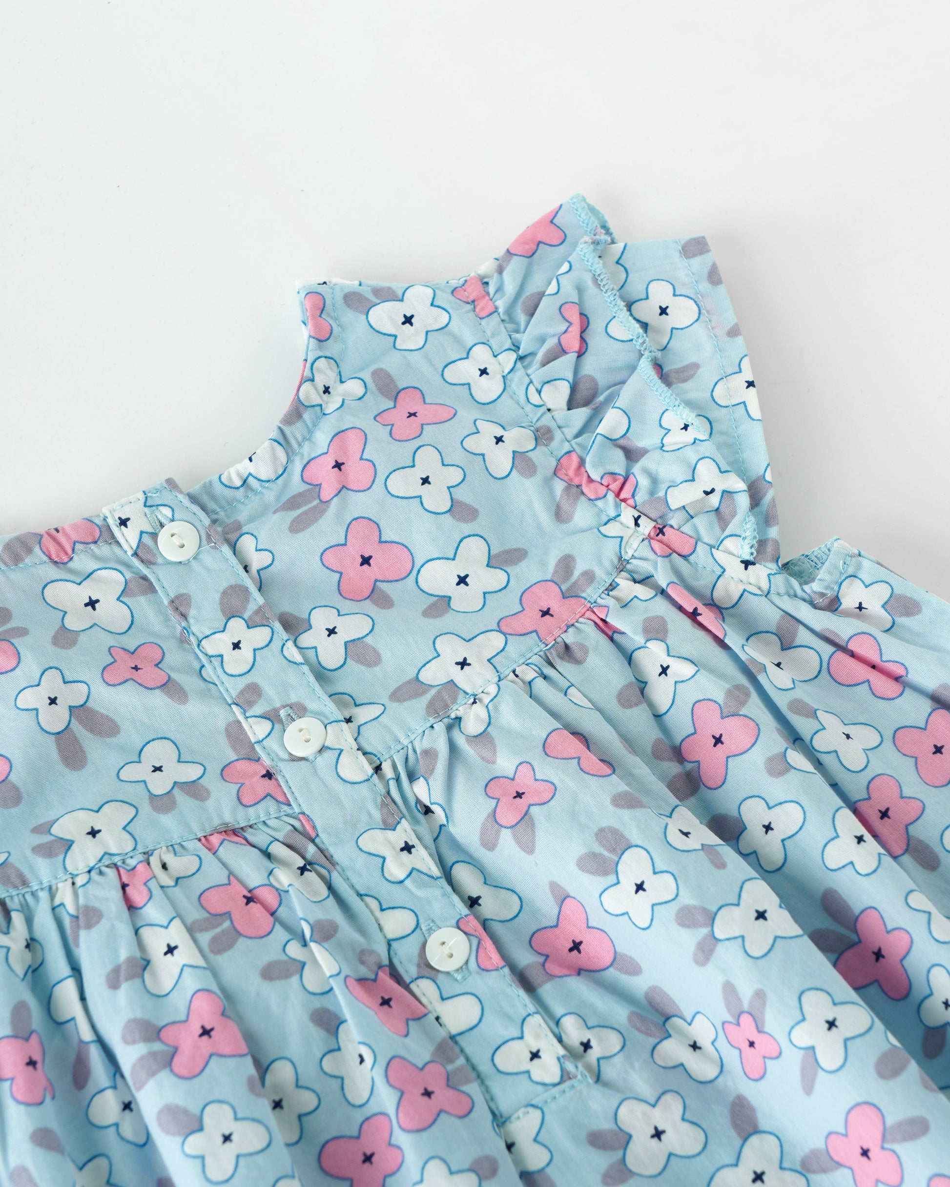 Charming Baby Blue Floral Dress for Little Girls - Pure Cotton Comfort