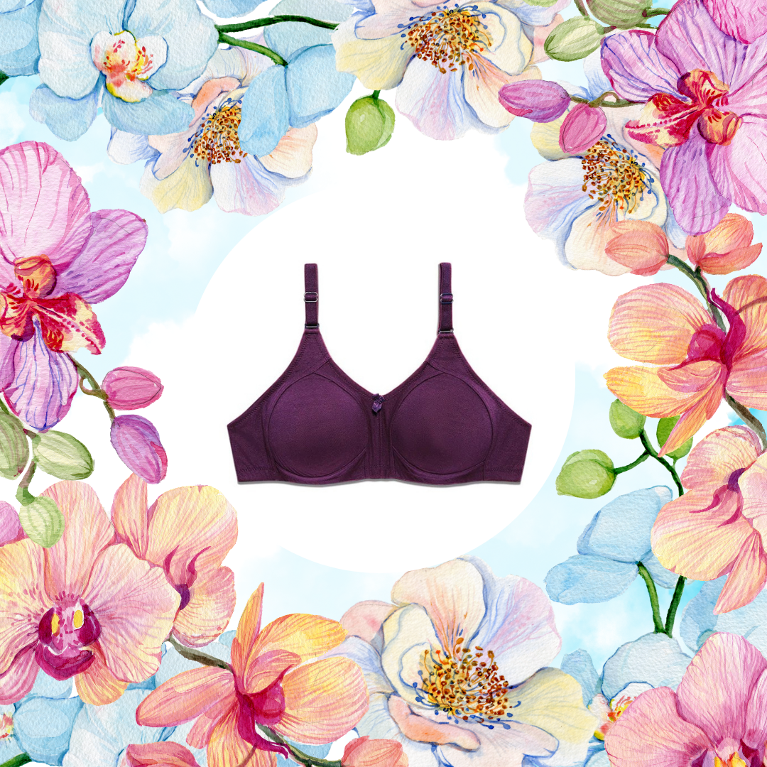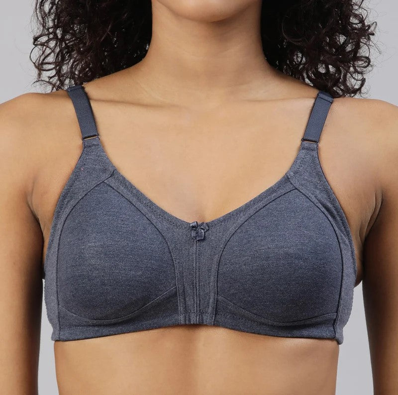 - A double-layered, Full coverage, panelled and moulded bra that's non-wired and non-padded.