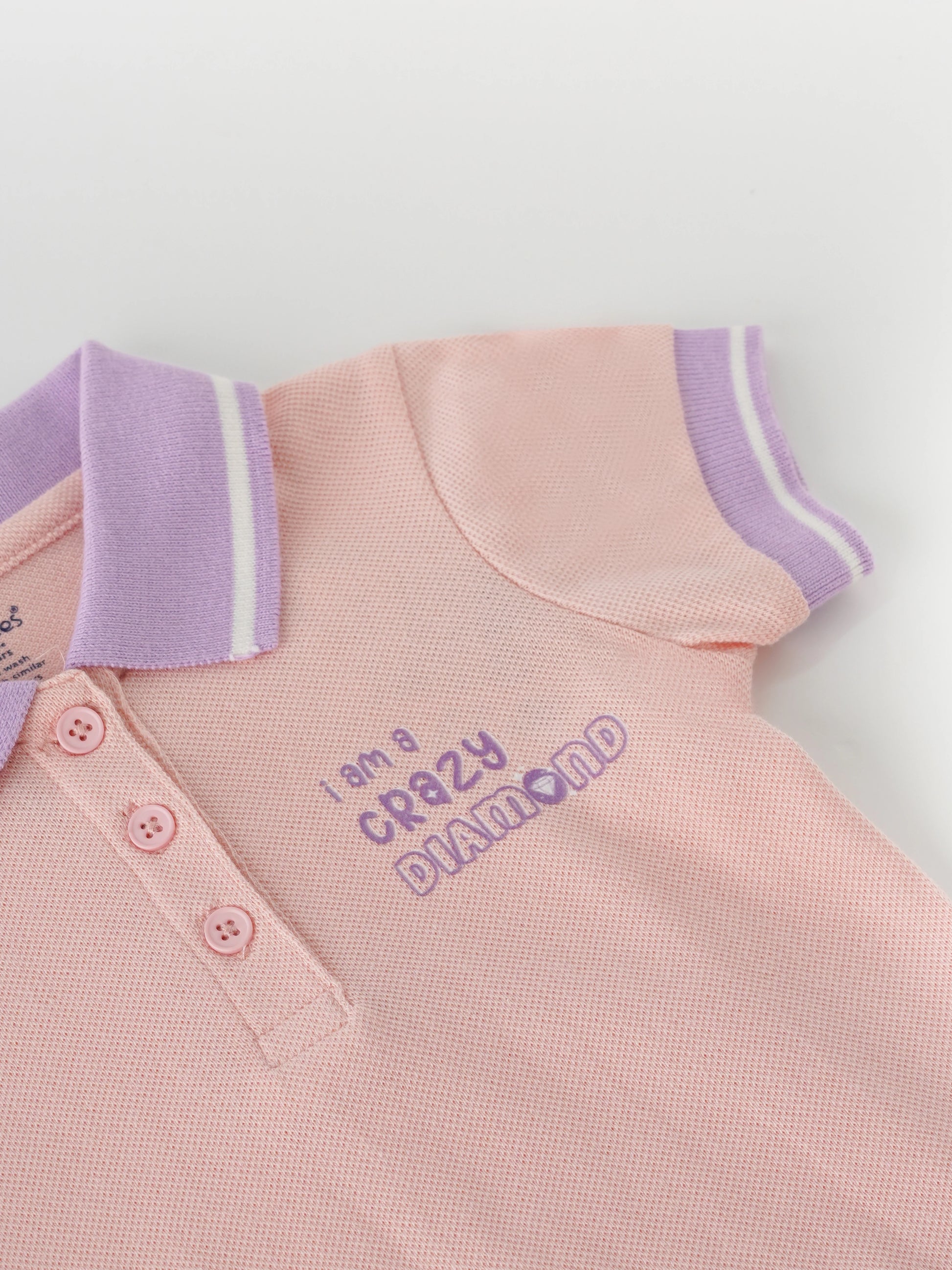 Dress your little one in this charming strawberry pink printed t-shirt, perfect for any occasion from playdates to quiet days at home. This polo tee features a lilac collar and lilac sleeve bands, ensuring your child stands out in style. Pair it with any bottoms for an adorable and comfortable ensemble. Shop now for this delightful addition to your child's wardrobe!